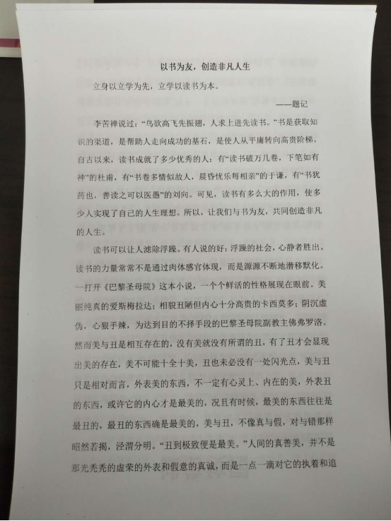 此次“书香校园·我因读书而改变”征文大赛为广大热爱读书的学生提供了一个展现自己的舞台,日后,教育科学学院也会多多举办此类活动,本次征文大赛系级比赛圆满结束。