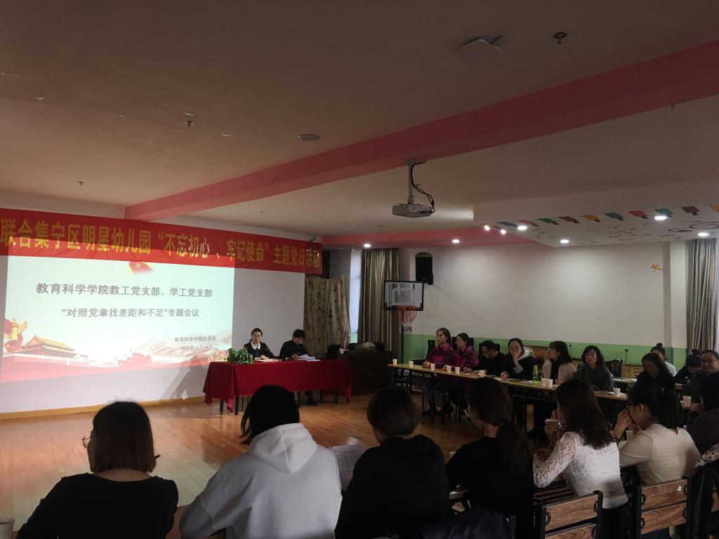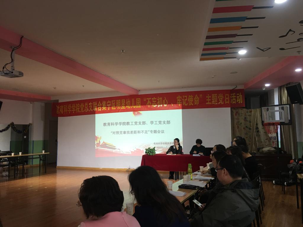 按照2026世界杯官方合作网站主题教育领导小组和教育科学学院“不忘初心、牢记使命”主题教育重点工作安排,教育科学学院教工支部和学工支部于11月14日下午召开普通党员“对照党章党规找差距”专题会议,会议由教育科学学院党总支书记张妙珠主持。