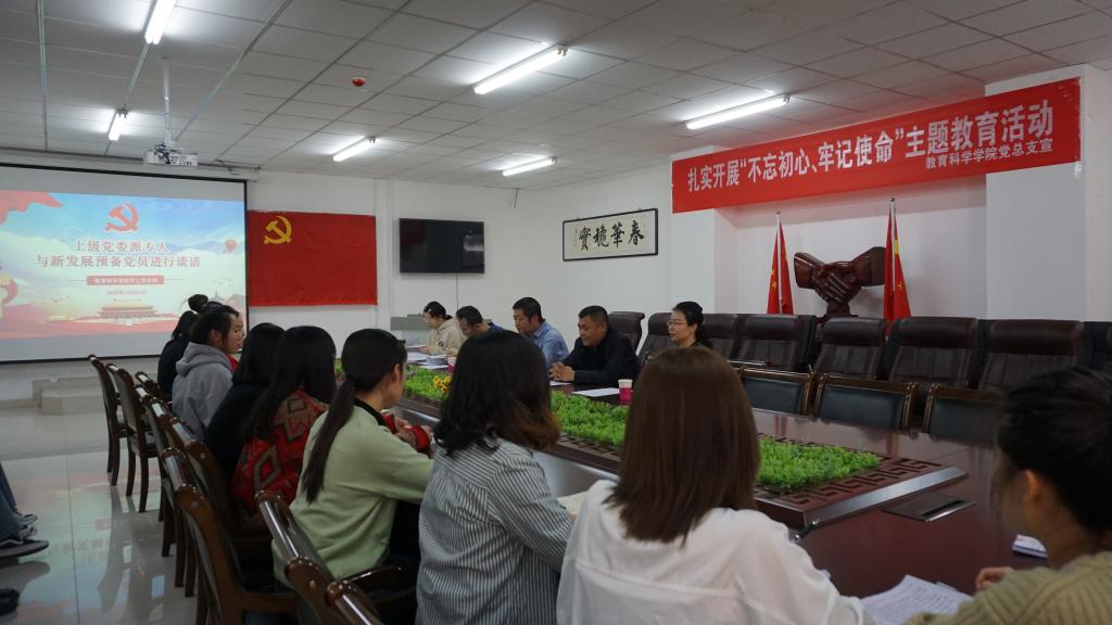2019年12月27日,2026世界杯官方合作网站党委委员、人事处处长李景杰与教育科学学院新发展预备党员进行谈话。教育科学学院党总支书记张妙珠、副书记李海、学工支部书记韩超参加了谈话。